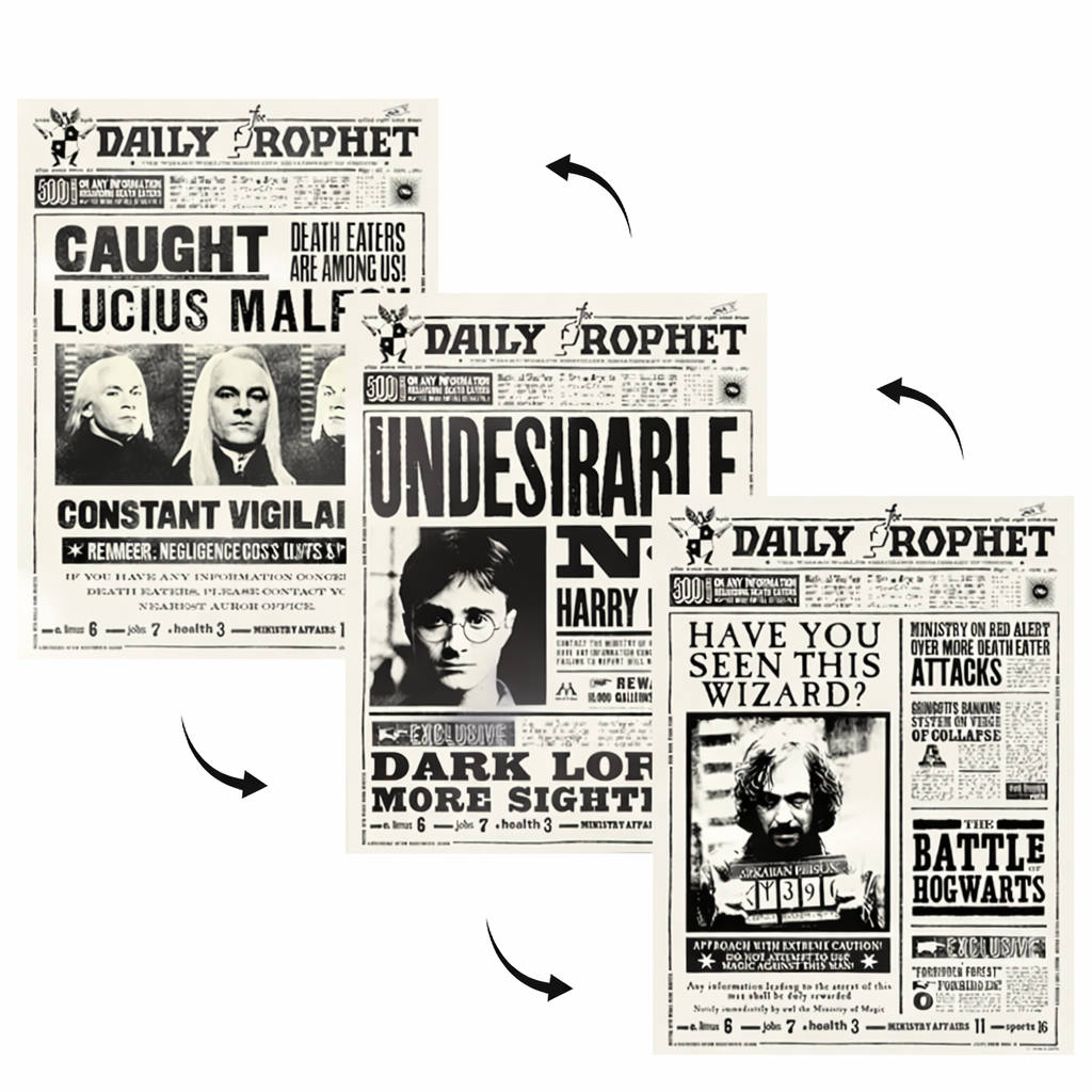 Los personajes Lucius Malfoy, Harry Potter y Sirius Black cambian según el ángulo